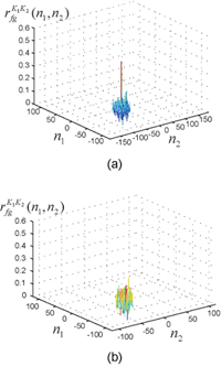 得られた共通領域に対して位相限定相関法を用いて類似度を求めます。位置や角度、ひずみが補正され、共通領域を抽出しているので、同じ人のほぼ同じ位置を撮影したエックス線写真であれば、鋭い相関ピークが現れます。もし違う人のものであれば、位置などを合わせたとしてもピークが現れません。そこで、開発したシステムでは、このピークの高さを類似度として用いています。ピークは、最大値が1、最小値が0であることより、1に近い値となれば同じ人であると言えます。図5が位相限定相関法を用いて画像の類似度を評価した例になります。図5の(a)が同じ人の場合、(b)が違う人の場合となります。