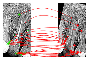 しかし、これまで、エックス線画像の照合は人手によって行われており、コンピュータによる自動照合は困難でした。これに対して、私たちのグループでは、「位相限定相関法」と呼ぶ超高精度画像マッチング技術に基づいて、エックス線画像に含まれるひずみを高精度に補正しながら自動照合する手法を提案しています(図2)。これは、画像の膨大な情報量を活用した、より精密な第二段階のスクリーニングの可能性を初めて示したものです。実際には、①の歯科所見や治療記録と②の歯科エックス線画像を複合的に用いることで、高度な身元検索が実現できると期待されます。