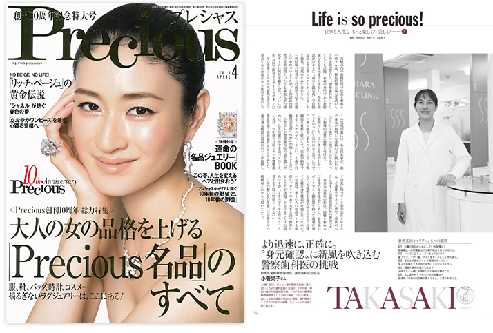 4月号の婦人雑誌プレシャスに警察歯科医の働く女性として取り上げていただきました。