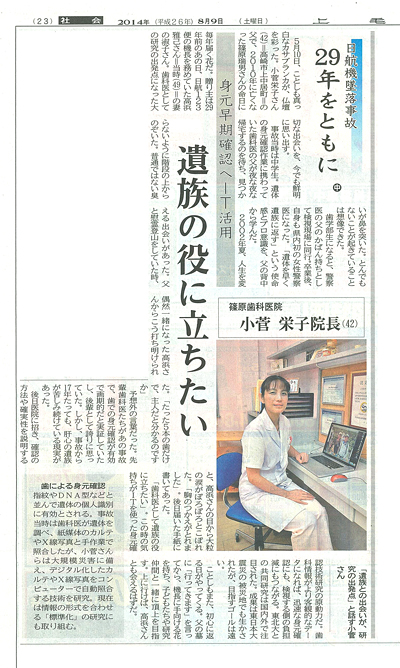 上毛新聞に御巣鷹の慰霊登山と歯の照合システムについて掲載されました。