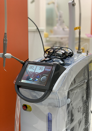 今回、導入したエルビウムヤグレーザーは、むし歯の治療を唯一薬事許可されたレーザーで、発熱が少なく、表面で反応するので、安全性の高いレーザーと言われています。 むし歯治療、歯周病治療、歯周病の予防、色素沈着除去、口内炎・口角炎/義歯による傷口の殺菌、歯石除去、知覚過敏、等で使用されます。